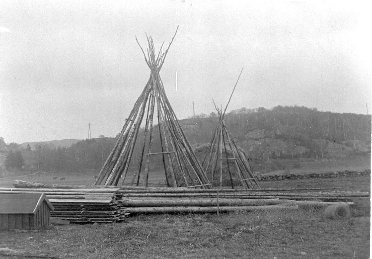 Krake: stör med gröda upphängd för torkning. Krakstören är ofta försedd med krakstopp, en tvärslå som hindrar den krakade grödan att vila på marken.