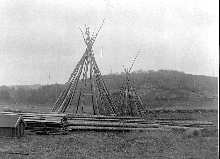 Krake: stör med gröda upphängd för torkning. Krakstören är ofta försedd med krakstopp, en tvärslå som hindrar den krakade grödan att vila på marken.