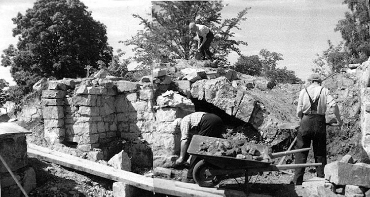 Hornborga kyrkoruin, utgrävning av ruinen.
