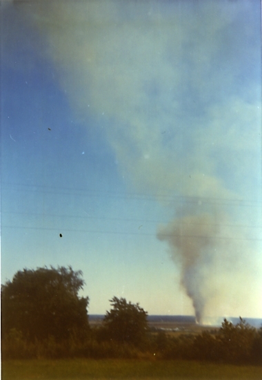 Vassen brinner i Hornborgasjön efter sjöns tömning 1950-talet.