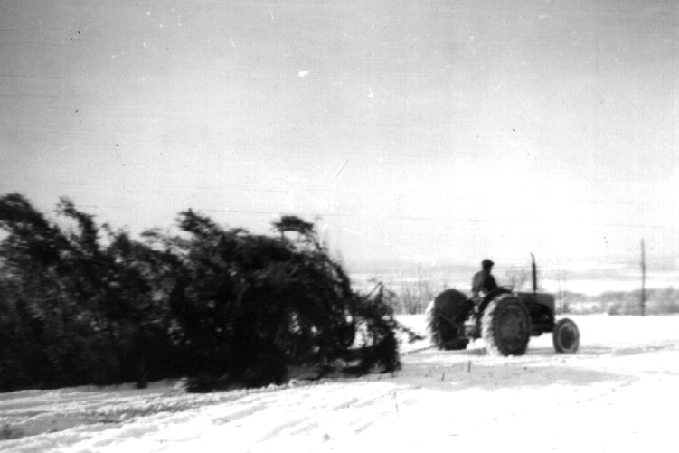 Bortforsling av stormfälld gran 1967.