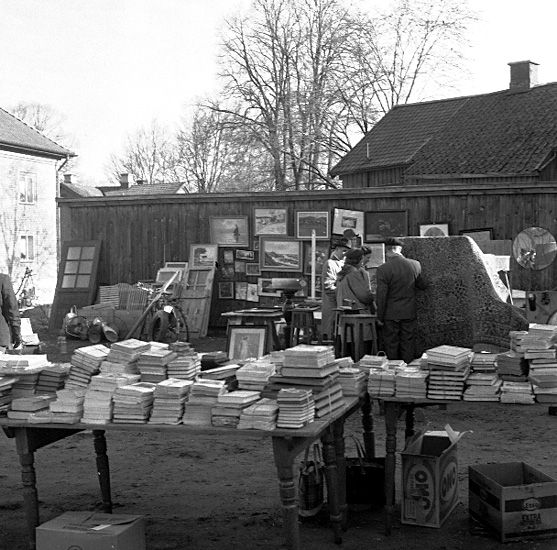 Titel: Skara. Lions club, loppmarknad på Lindmarks bakgård 10/5 1958.