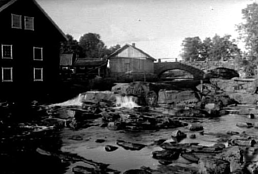 Kvarnen vid Flian och bron över ån för vägen Ardala-Norra Vånga vid Blombacka.