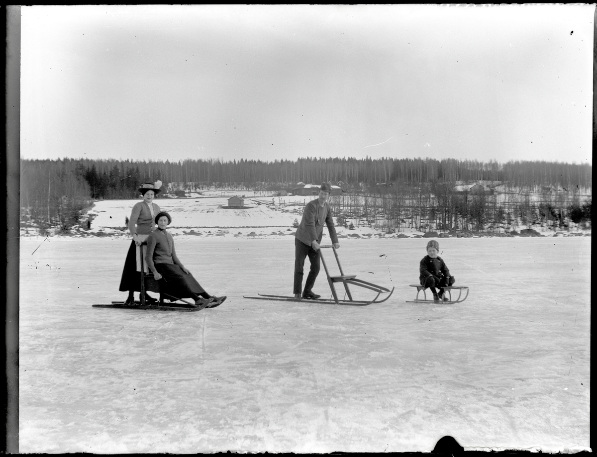 Oliver och Harald Malmberg med två pigor på sjön Skagern