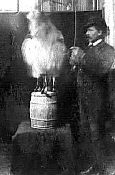 HUND SOM STÅR PÅ EN TUNNA.