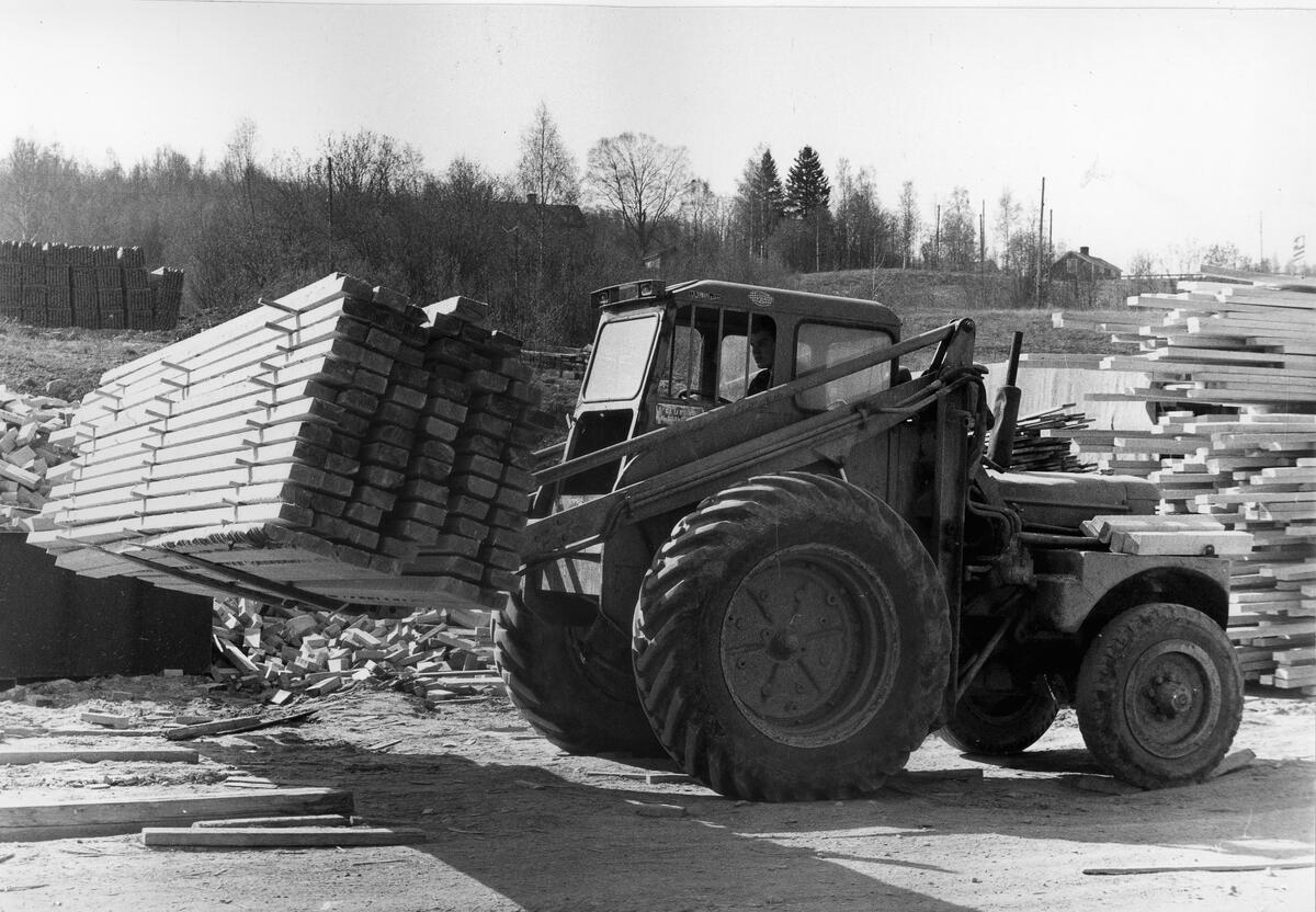 Sågverket. En bunt transporteras till uppläggningsplatsen.