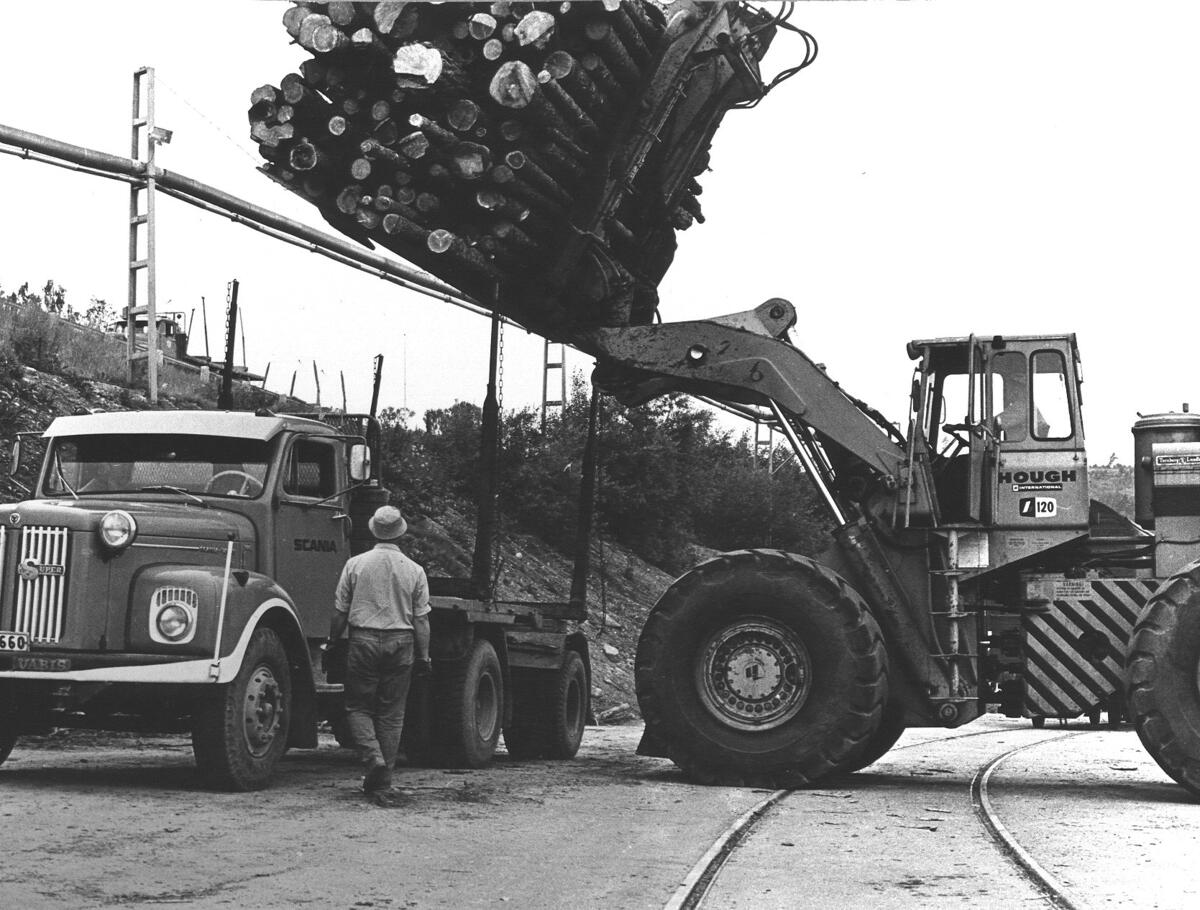 Lossning av massaved vid Dynäsfabriken. Ur Ådalens släktforskarförenings bildarkiv