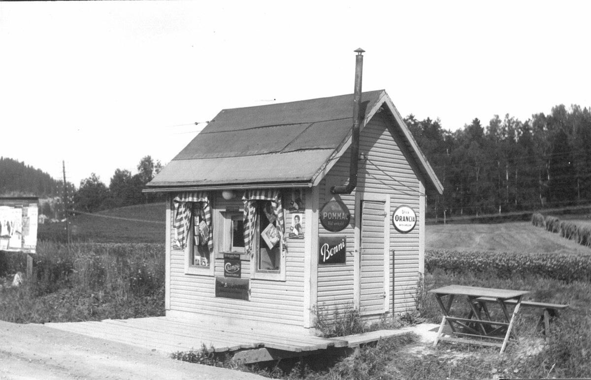 F.d Wallins kiosk i Öd. Fotot uppges vara taget omkring år 1930. Ur Ådalens släktforskarförenings bildarkiv
