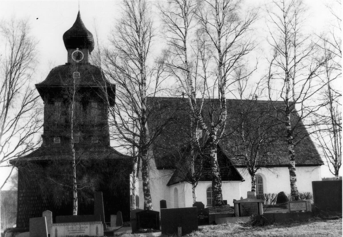 Årtalet 1437 finns uppgivet som byggnadsår för den nuvarande kyrkan. Den ersatte en äldre kyrka från 1200-talet. Den nuvarande kyrkan är uppförd i vitputsad sten i gotisk stil. Taket hade sannolikt lägre resning än nu. När stjärnvalv slogs ca 1500 höjdes taket och fick det nuvarande höga, branta takfallet. Taket täcks av spån och har tre spånklädda takryttare. Målningarna överkalkades på 1700-talet. En del äldre inredningsdetaljer finns bevarade bl.a ett krucifix från ca 1500. Från 1600-talets slut och 1700-talet finns en del fast inredning kvar som predikstol och dopfunt. Klockstapeln klädd med spån är uppförd 1759 av Pehr Zackrisson i Kubbe.