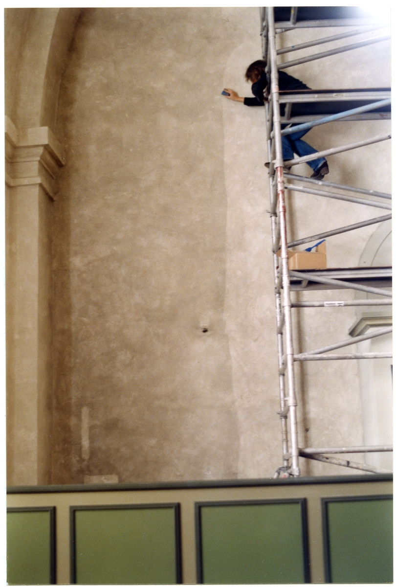 Västerfärnebo kyrka. Vägg under rengöring, 1999.