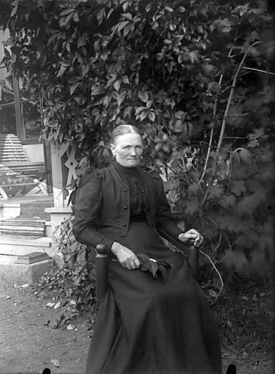 Äldre kvinna vid prästgårdens veranda, Lillhärad.