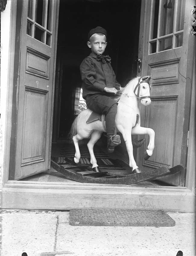 Pojke på gunghäst, Lillhärad, ca 1910.