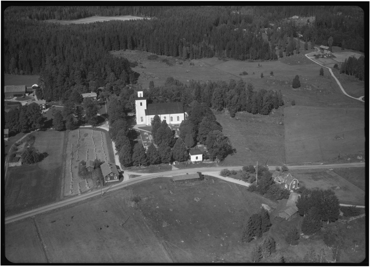 Flygfoto över Gunnilbo kyrka, Gunnilbo.