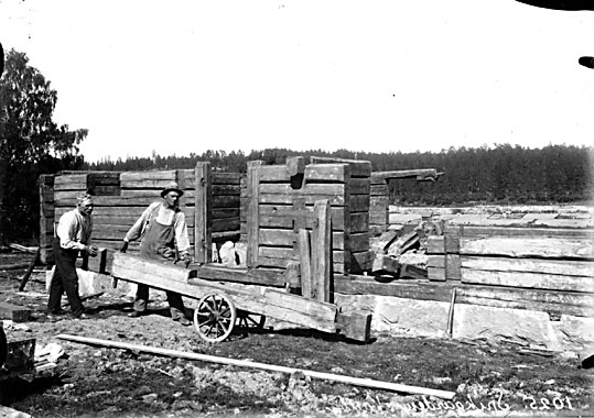 Uppförande av bostad från Spikgården i Grimsö, Vallby friluftsmuseum i Västerås.