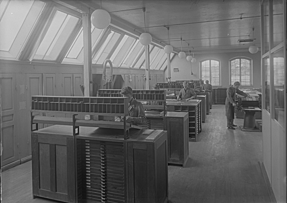 Interiör från Västmanlands Läns Tidnings civilsätteri, Västerås.