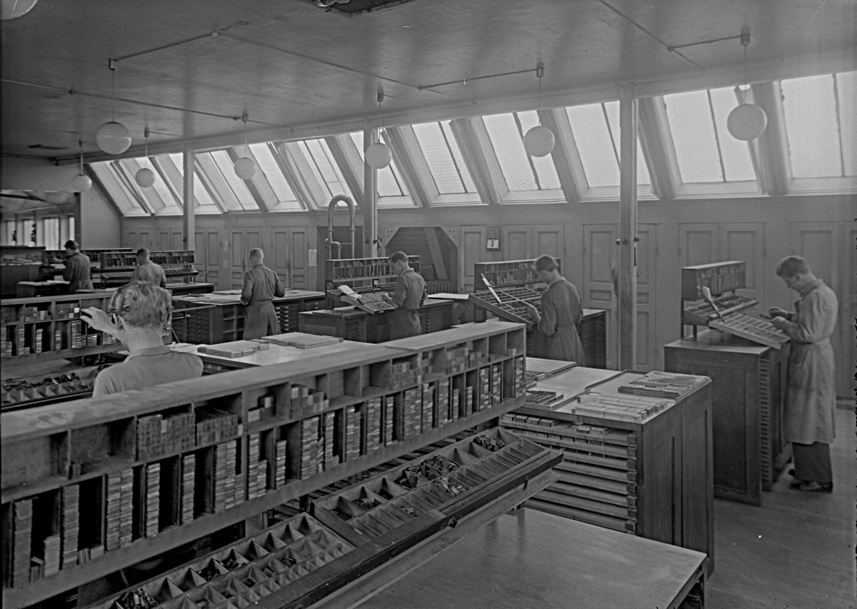 Interiör från Västmanlands Läns Tidnings civilsätteri, Västerås.