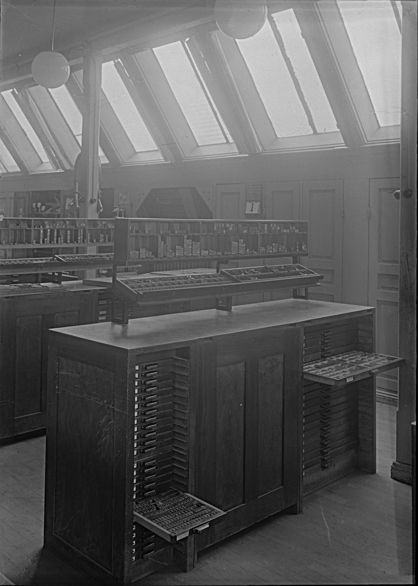Interiör från Västmanlands Läns Tidnings civilsätteri, Västerås.