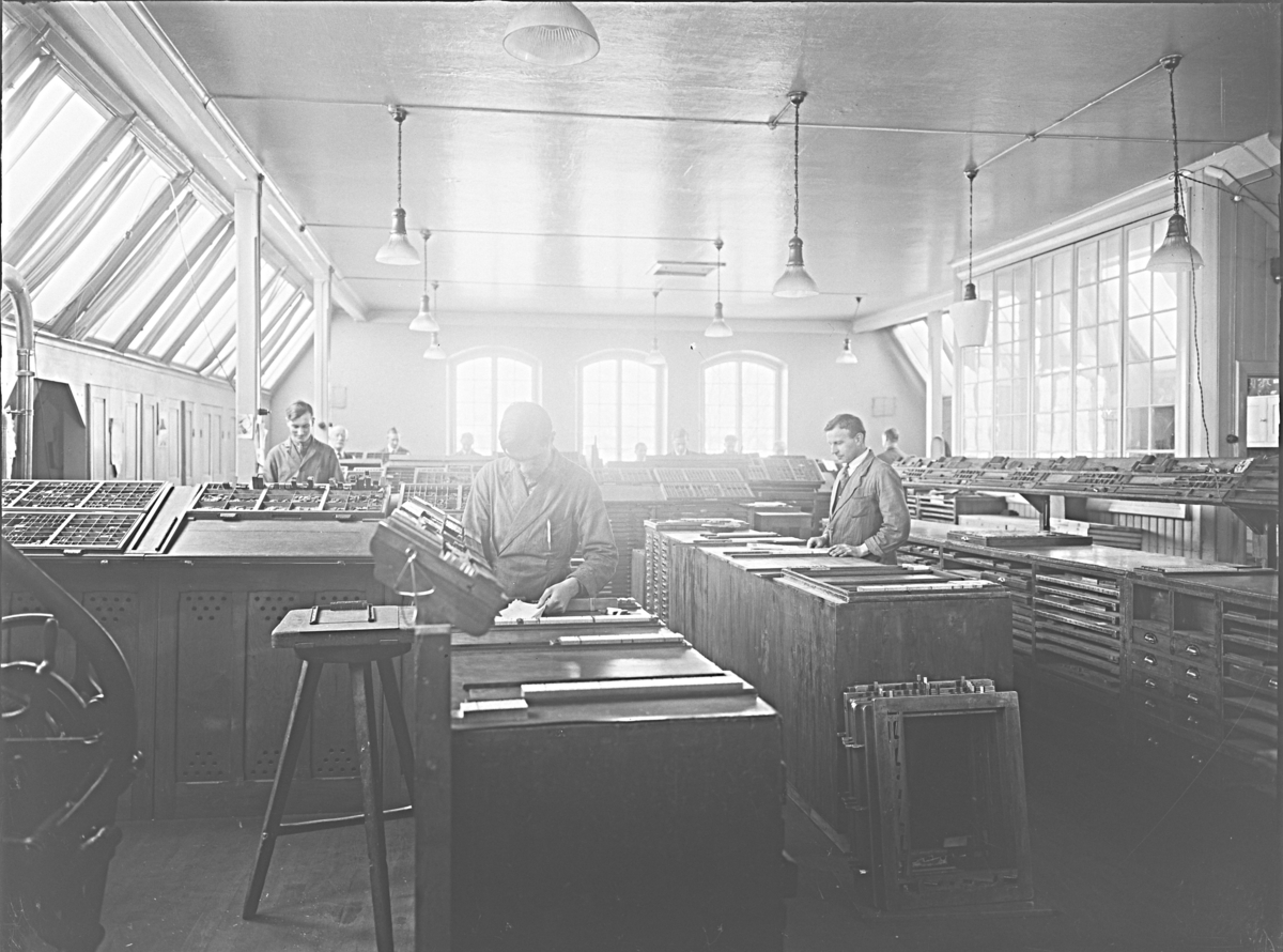 Interiör från Västmanlands Läns Tidnings sätterilokal, Västerås.