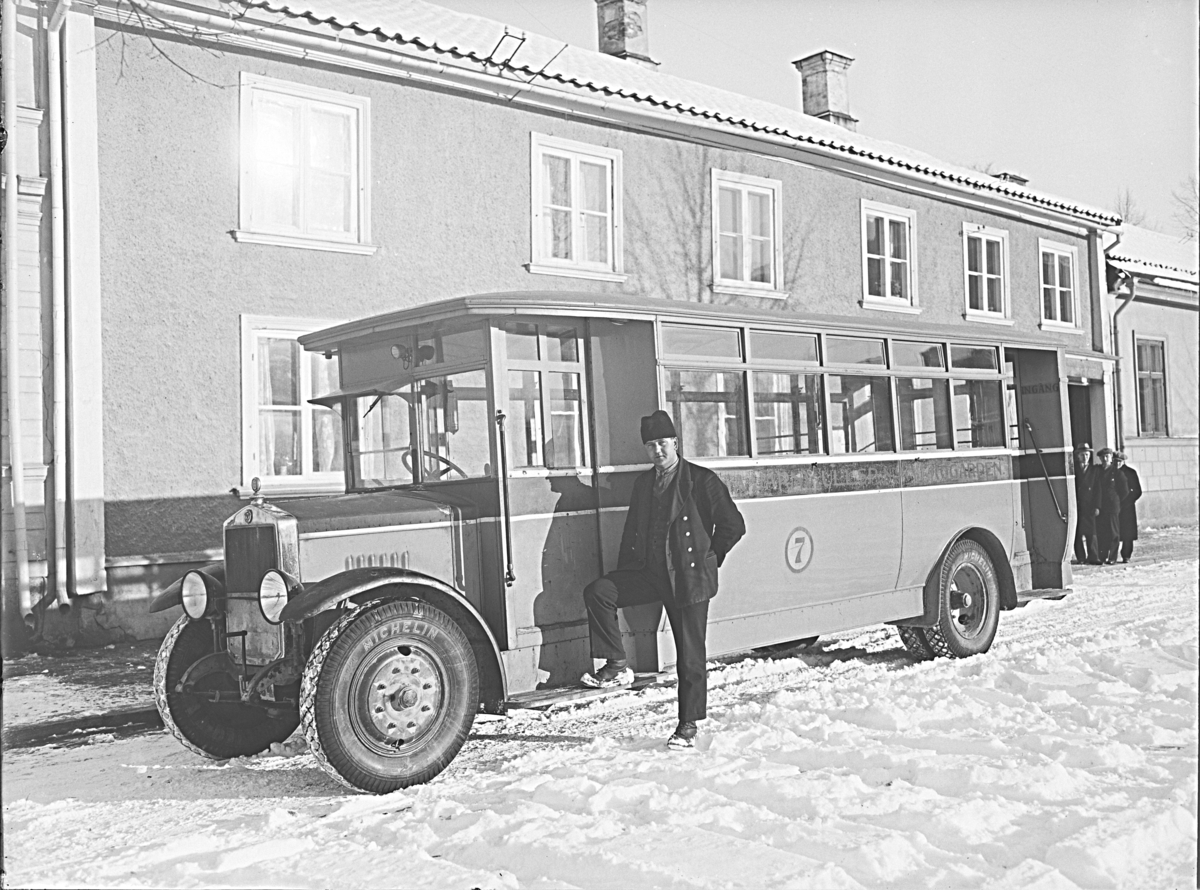 Stadsbuss parkerad utanför Fiskartorget nr 1, Västerås.