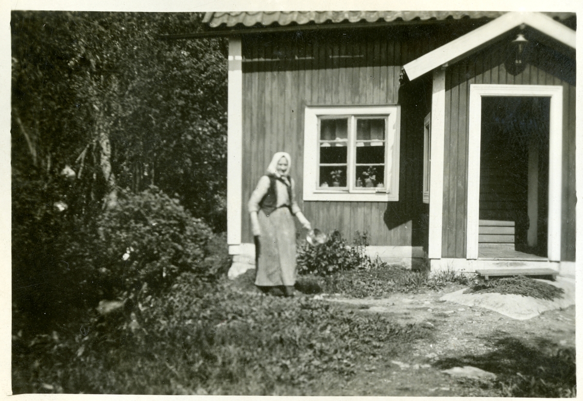 Torp ev. i Fillinge, Medåker socken. Nils Richard Berglings farmor Johanna står framför huset.