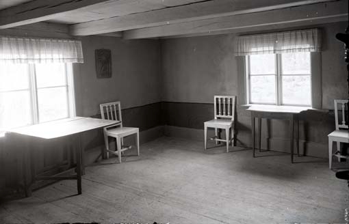 Interiör av helgdagsstugan vid prästgården på Vallby friluftsmuseum i Västerås.