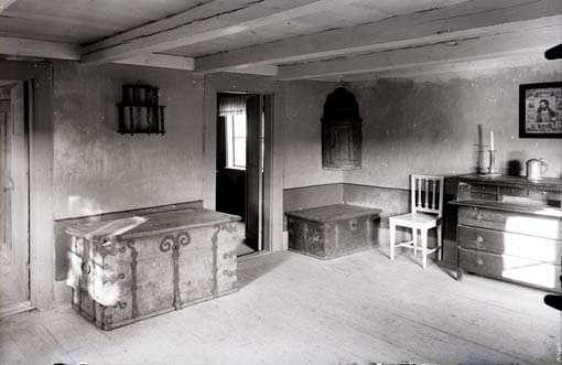 Interiör av helgdagsstugan vid prästgården på Vallby friluftsmuseum i Västerås.