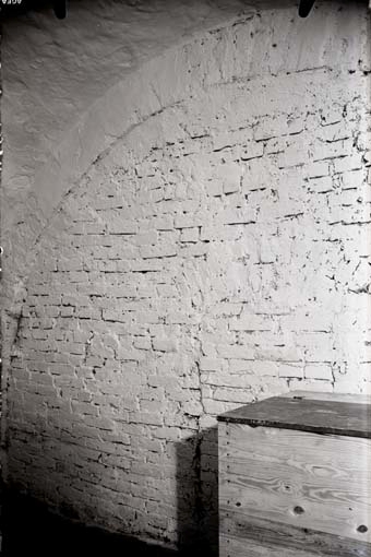 Detalj av källare under Komministergården, igenmurat väggparti, Östra kyrkogatan 5 i Västerås.