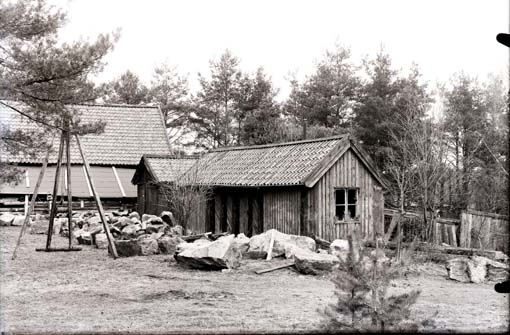Uthus under rivning, från söder, på Vallby friluftsmuseum, Västerås.