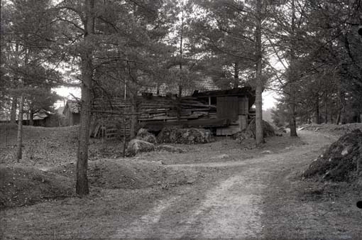 Loftbod och timmerhög från Norra Sylta, på Vallby friluftsmuseum, Västerås.
