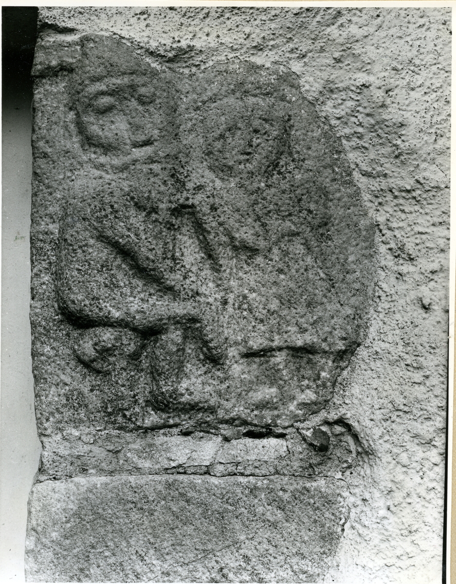 Skulpterade figurer av Mustaschmästaren på Torpa kyrka.