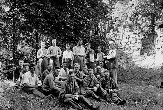Grupp av samvetsömma värnpliktiga vid Stora Rytterne kyrkoruin i Lundby, Västerås.