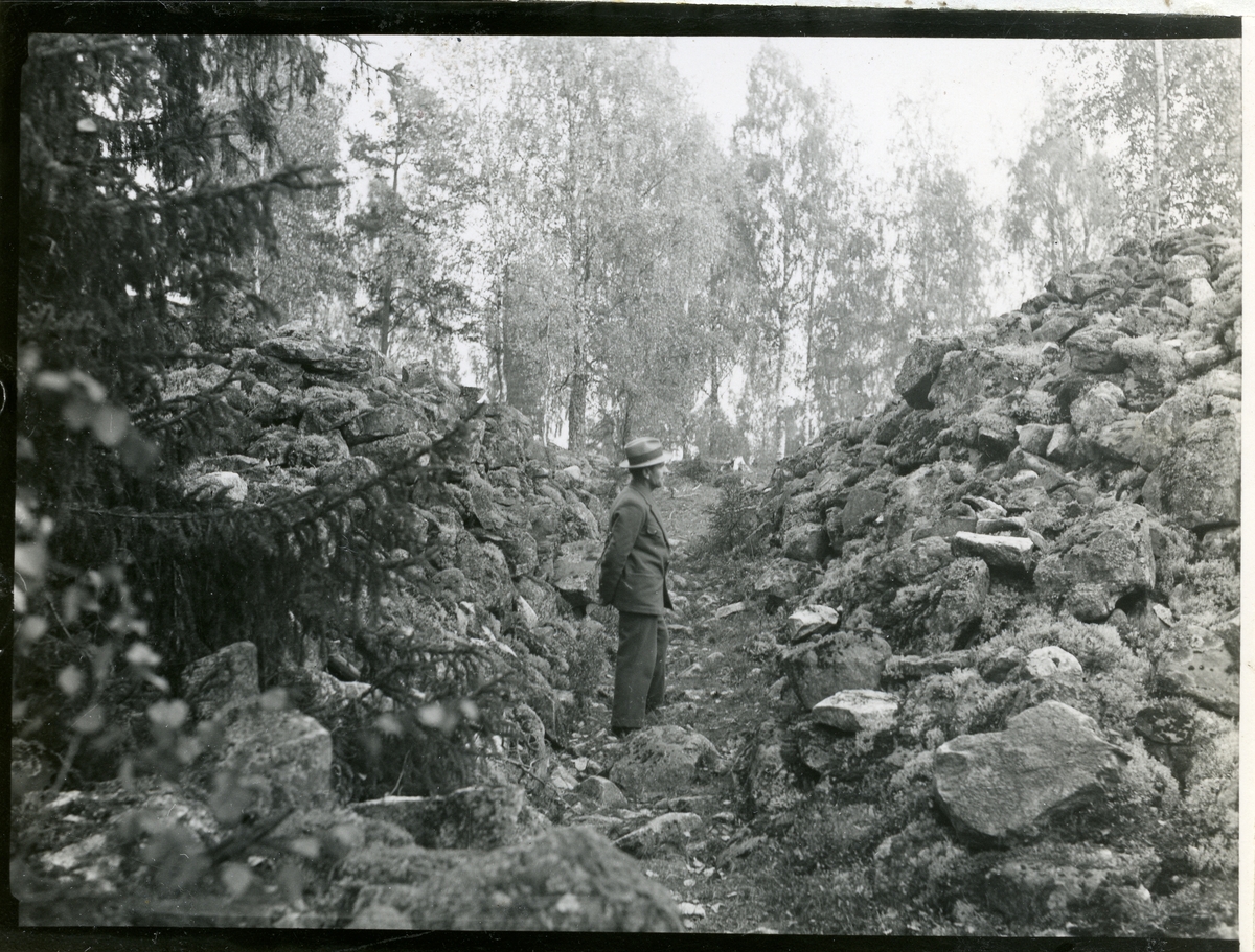 Man stående i Borgby skans.