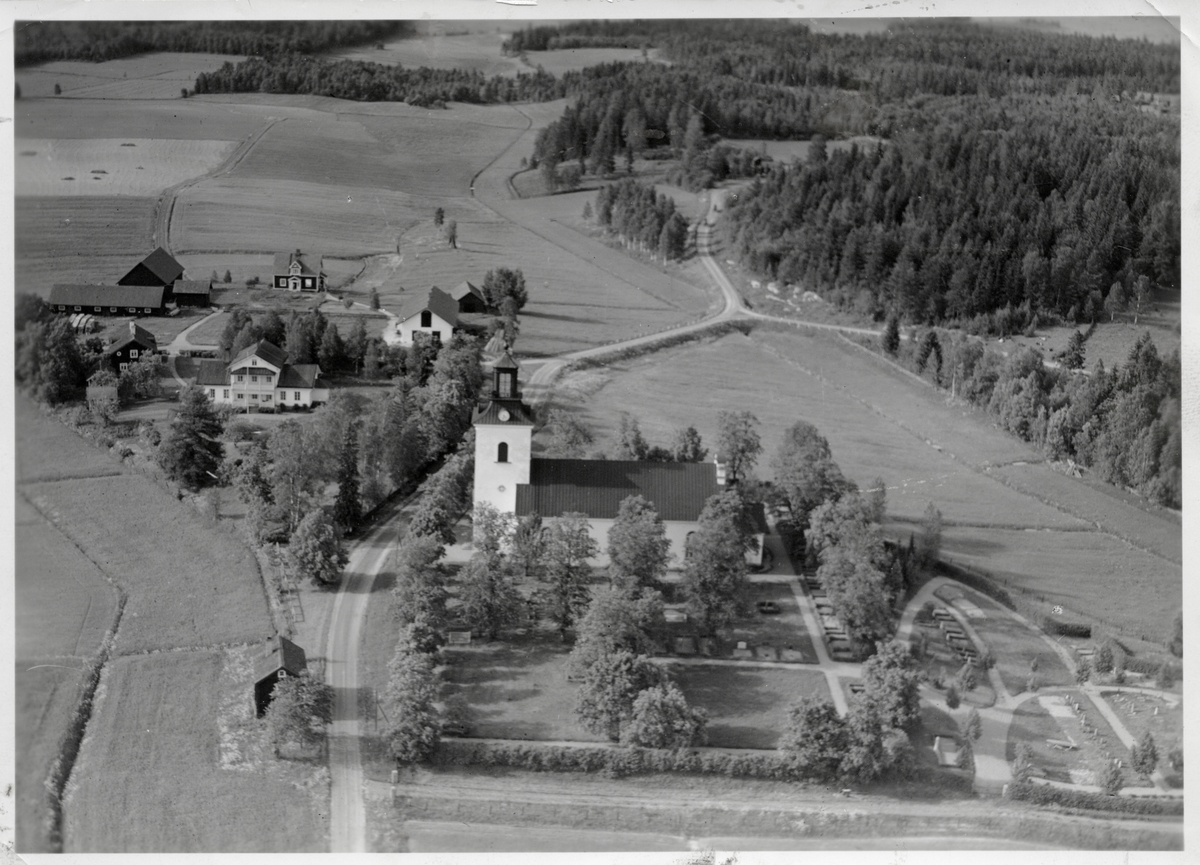 Flygfoto över Karbennings kyrka i Åsby, Norberg