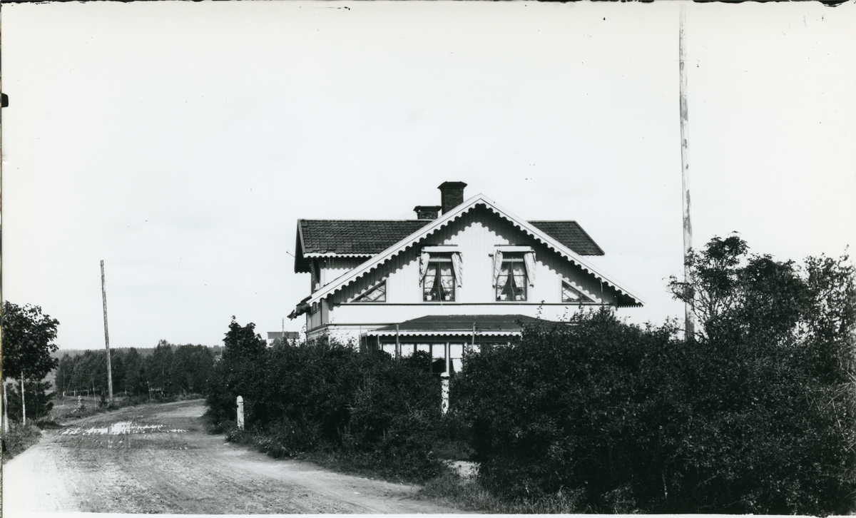 Herrgårdsbyggnad bakom häck. C:a 1900.