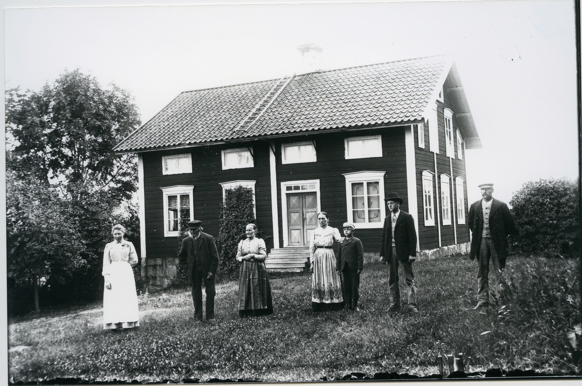 Troligen familjen Nygård utanför stugan i Kolpelle.