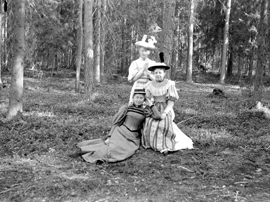 Grupporträtt av tre kvinnor i skogen, Riddarhyttan.