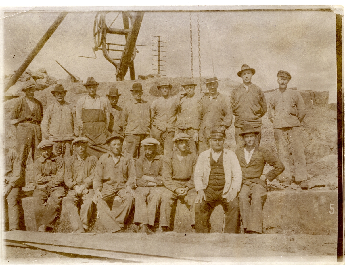 Arbetslag vid Gustav Sörboms stenhuggeri, ca 1910-20-tal.