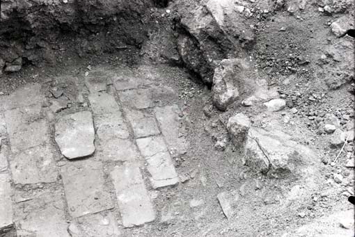Del av tegelgolv, Sankt Nicolai kyrka, Stora gatan 44, Västerås.