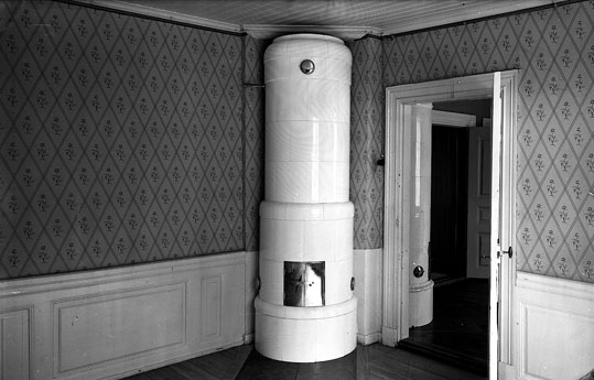 Kakelugn i rum på Väsby Kungsgård, Sala.