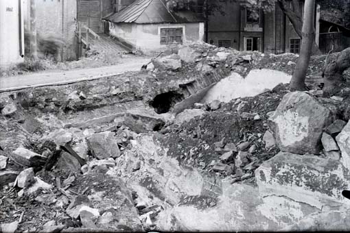 Titel: Källarbyggnad mot Badhusgatan (Mynthuset?) vid Domprostgården i Västerås.