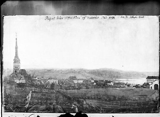 Oljemålning med Västeråsmotiv av Joh. Fr. Petterson.