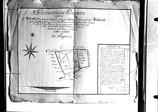 Karta 1782 över vretar tillhöriga hospitalet, Västerås.