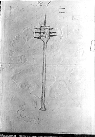Spikklubba, teckning av Richard Dybeck, Ängsö slott, Västerås.