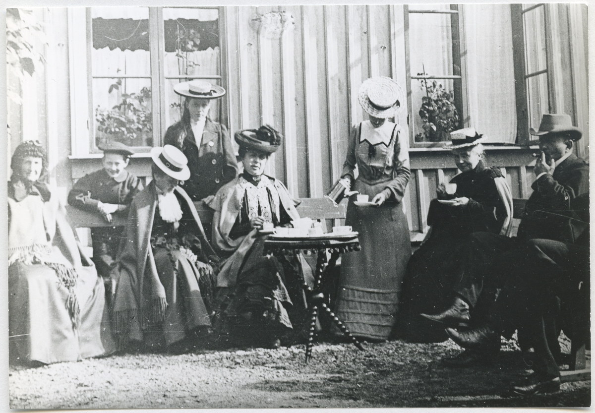 Herrgården. Kaffestund utanför herrgårdsflygel, 1903.