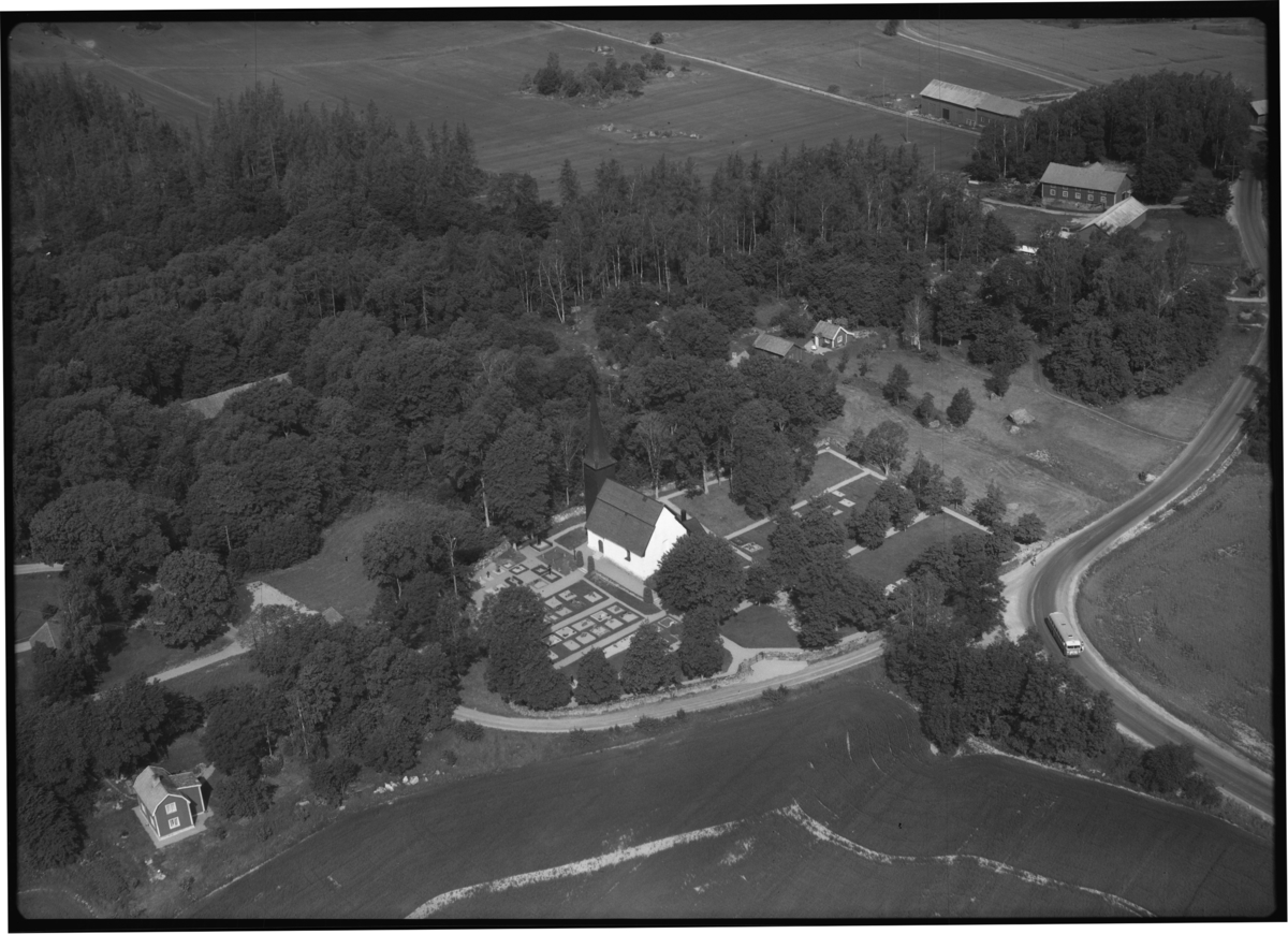 Flygfoto över Kungs Barkarö kyrka, Kungs-Barkarö.
