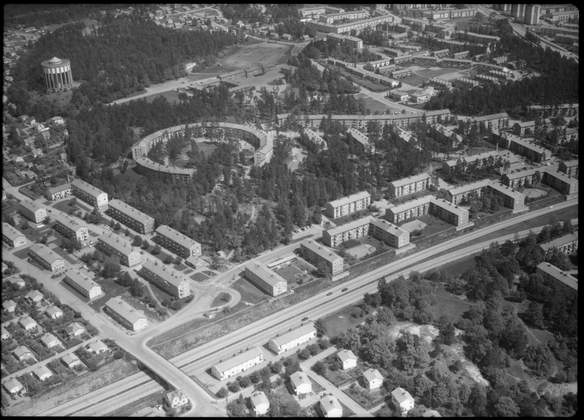 Flygfoto över stadsdel Skallberget, Tunbyvägen/Emausgatan, Västerås.