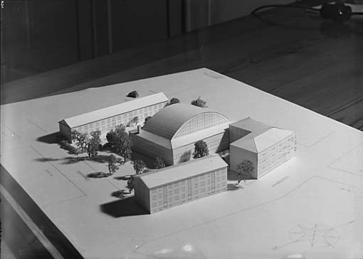 Modell av idrottshallen i Västerås.