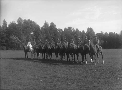 Titel: Grupporträtt med hästskötare, Västmanlands Regemente i Västerås.