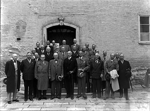 Grupporträtt på borggården till Västerås slott, Västmanlands Regemente i Västerås.