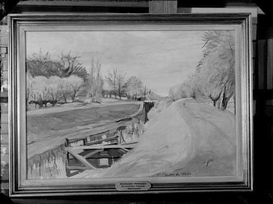 Målning föreställande landskap med Karl XV:s sluss, Strömsholm.